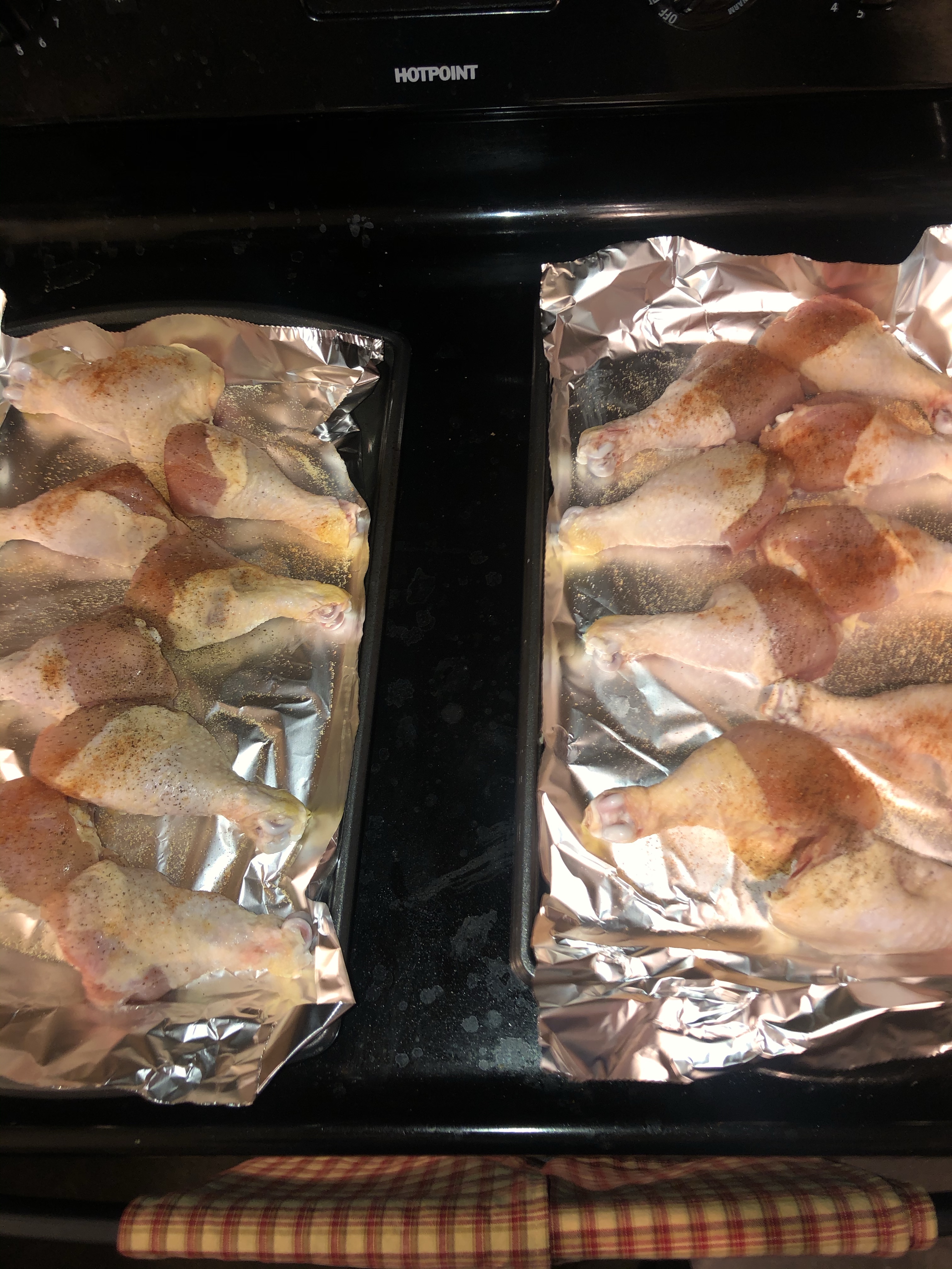 I began by purchasing 24 organic chicken drumsticks from Kroger. I left them thaw in the refrigerator for about 24 hours.